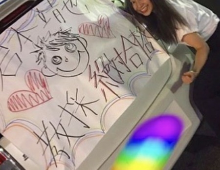 それにしても、彼の車のリアガラスに「応援ポスター」貼り付けるのは、やり過ぎだろ。