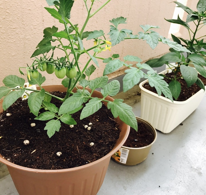 育てているのは、ミニトマト、ししとう、パプリカ、ミニヒマワリです(^ν^)