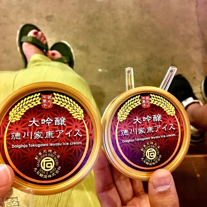 その代わりに【徳川家康 大吟醸入り アイスクリーム】をいただきました(^人^)ほんのり日本酒の風味が漂うミルクアイスです。とっても美味しくてペロリと食べてしまいました。